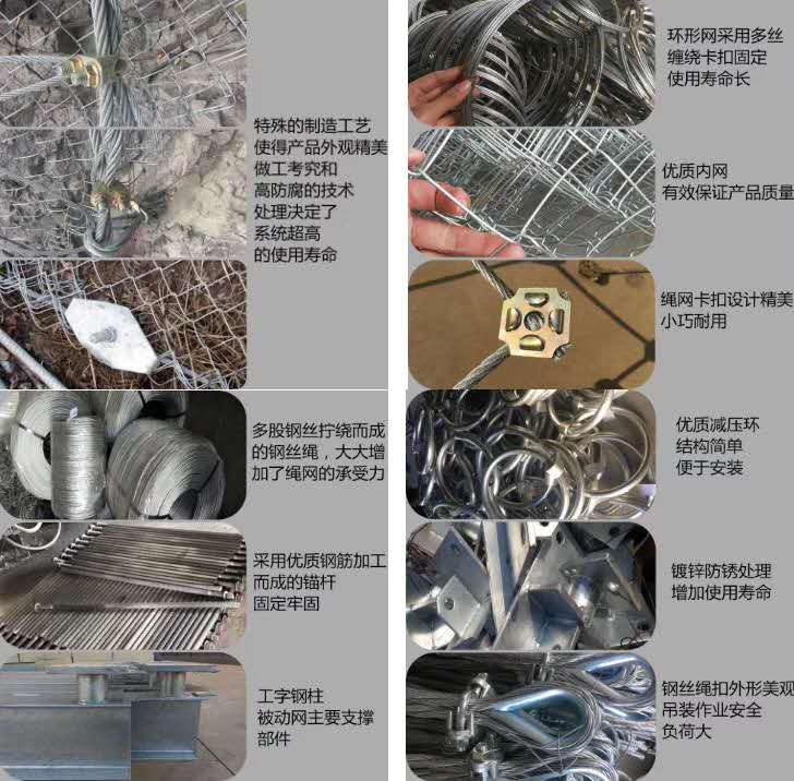 sns边坡防护网厂家系统的施工方法,该系统克服了刚性防护施工中诸多弊端,采用模块化安装方式、缩短了工期和施工费用,整个系统由高强度钢丝绳柔性锚杆及其它安装附件组合安装而成。